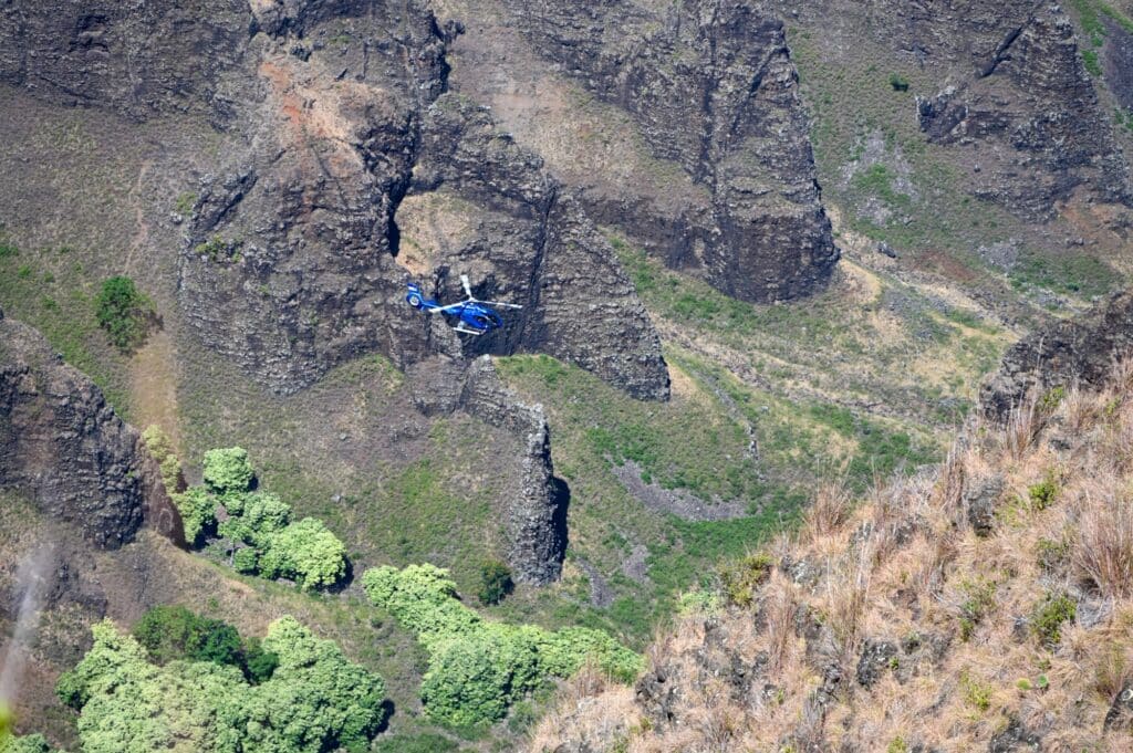 The Awa’awapuhi Lookout is the ultimate reward on this hike. Next to you, helicopters dive into the canyon, while far below you can spot boat tours bouncing across the waves hundreds of meters down.