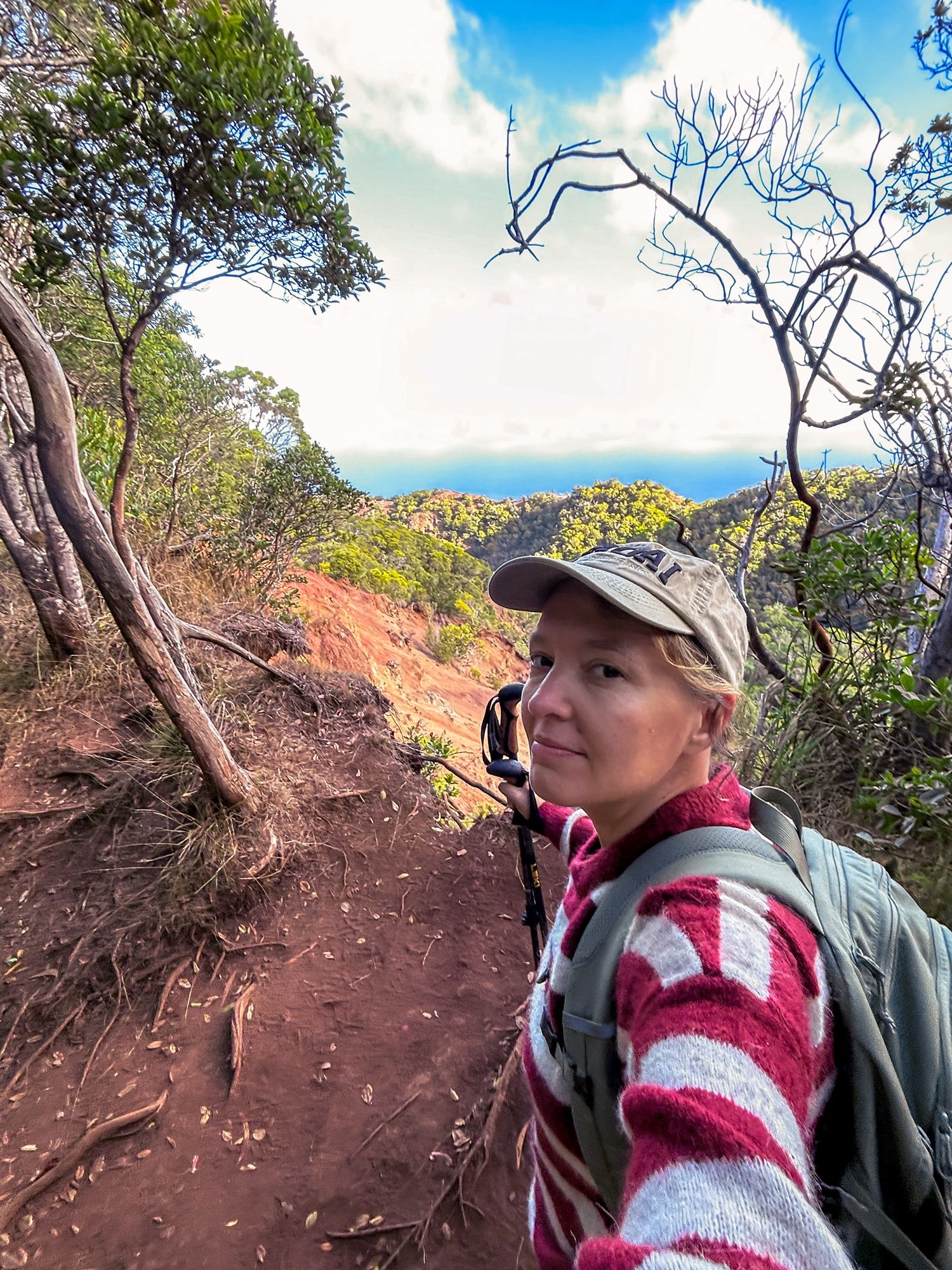 Sunscreen is a must. While most of the trail winds through the forest, there are plenty of exposed sections too — and the sun on Kauai can be relentless!