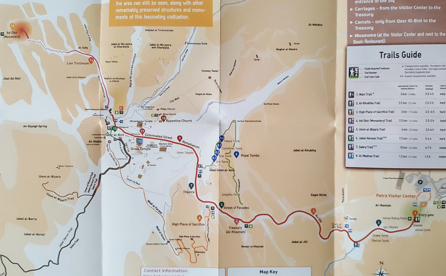 Ad-Deir Trail: 2,5K heen en terug. Deze trail begint aan het einde van de Main Trail en leidt naar het Klooster (Ad-Deir). Het is een adembenemende wandeling (ja, ook letterlijk, want je moet 788 traptreden beklimmen!), maar wel erg druk. Bij het klooster kun je eten en drinken kopen, en onderweg kom je tal van kraampjes tegen met drankjes en spullen die je waarschijnlijk niet echt nodig hebt.